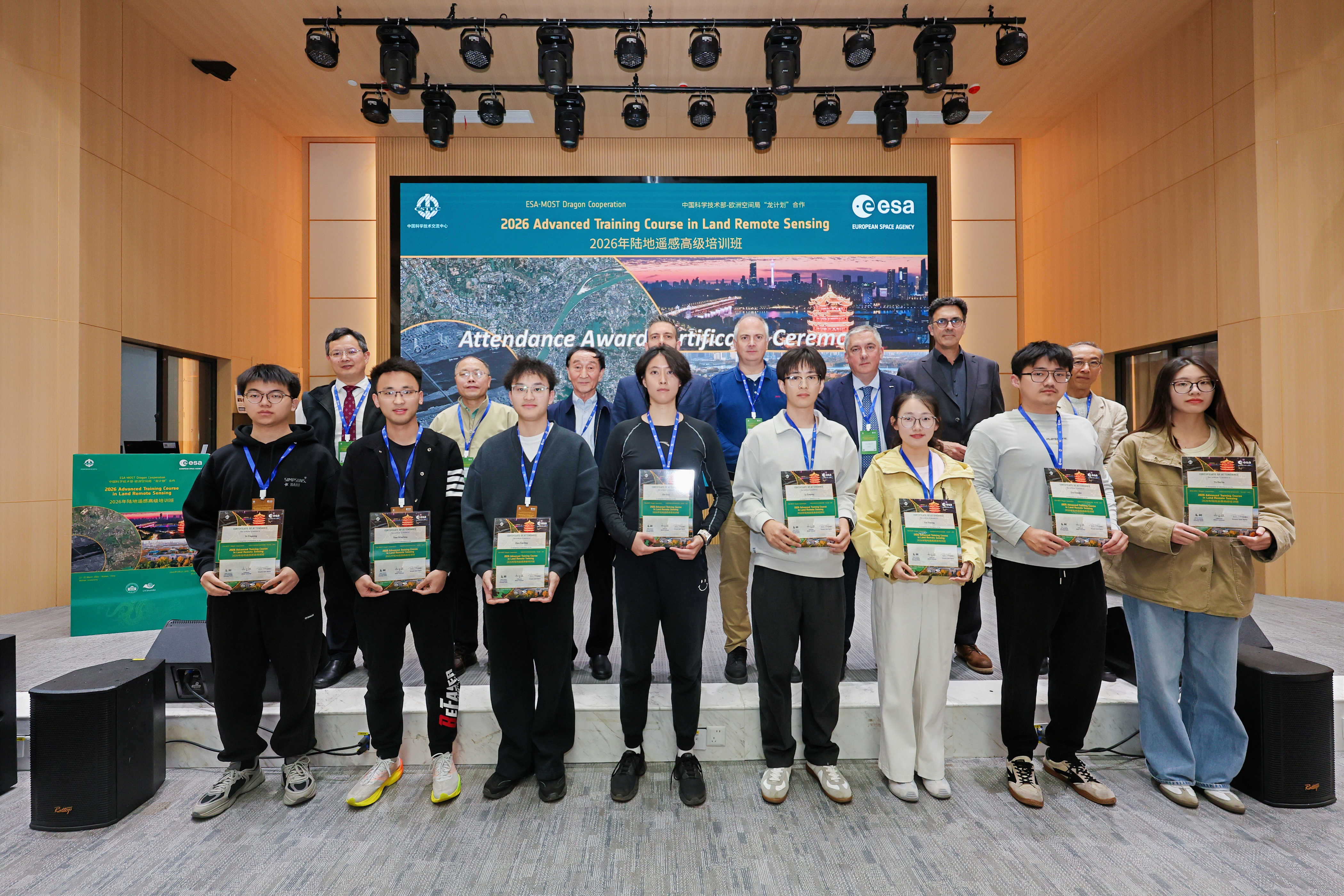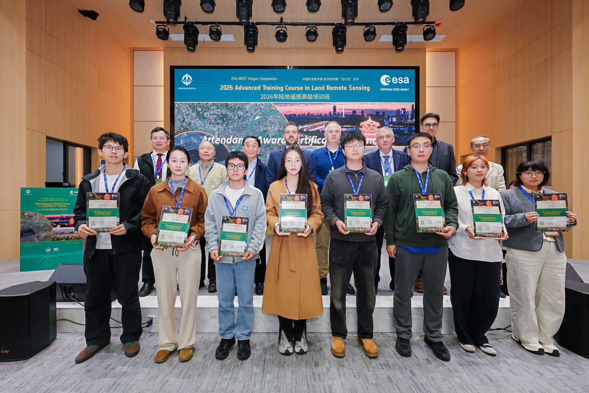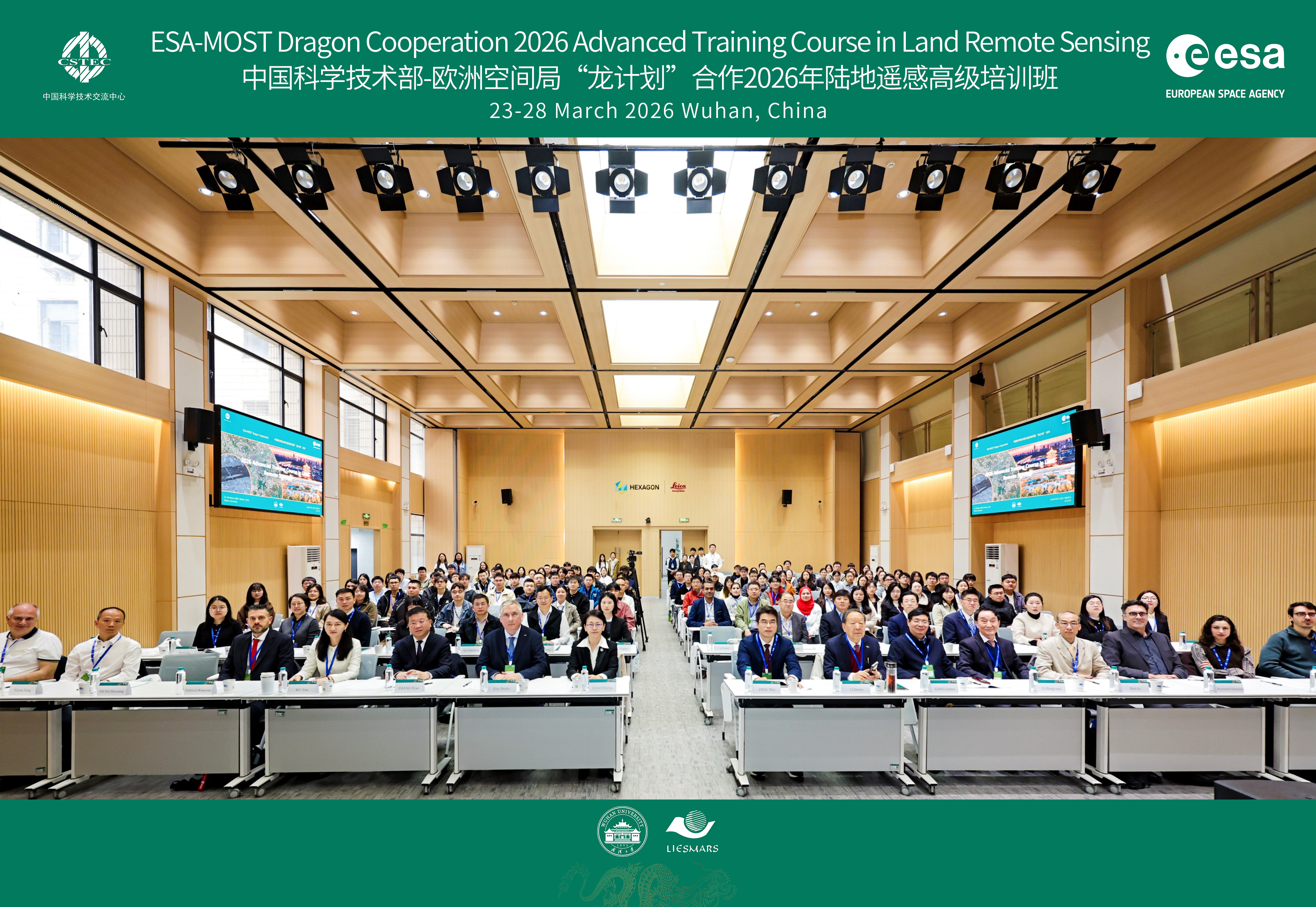 根据中欧国际合作项目“龙计划”六期框架协议,由欧洲空间局与中国科学技术部联合发起,中国科学技术交流中心组织实施的陆地遥感高级培训课程于2026年3月23日至28日顺利举办。本次培训由武汉大学测绘遥感信息工程全国重点实验室与武汉大学宇航科学与技术研究院共同承办,吸引了来自中国及亚洲多国的博士生、博士后及青年科研人员参与。实验室博士生刘莹、李雪鹏参加培训。